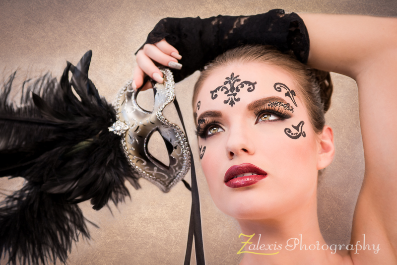 Cel de-al doilea look din pictorialul Masquerade, cel al Oanei, a fost realizat pe baza de tatuaje si completat de o masca venetiana.